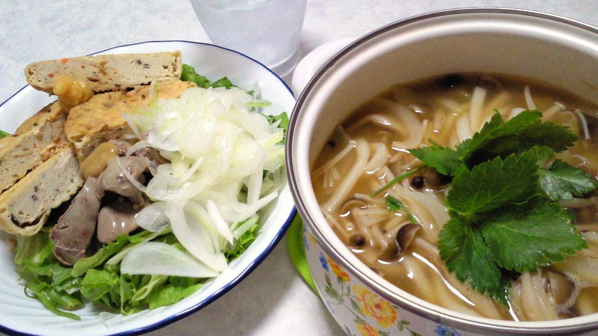 きのこうどん/がんもどき/オニオンスライス/