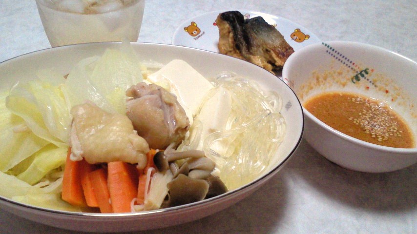 鶏と豆腐の水炊き/ごまだれ/ツバスのから揚げ/梅酒