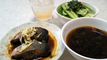 雑穀ご飯/ツバスの味噌煮/味噌汁(わかめとみつばの赤だし)/