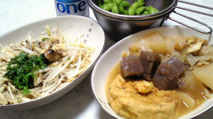 えだ豆/きのこのソテー/サッポロ ドラフトワン350ml×2本
