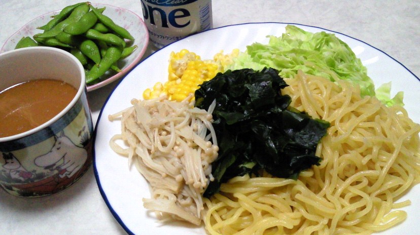 つけめん/キャベツ/カットわかめ/とうもろこし/サッポロ ドラフトワン350ml×2本