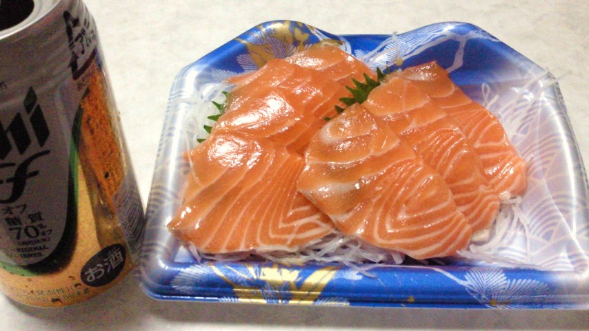 習慣的に鮭の刺身食べたいなぁ・・・。でもカロリー・・・と、一瞬頭をよぎるけど、