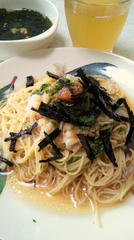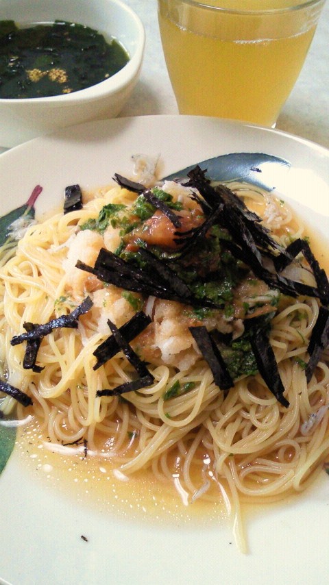 梅じそおろしのカッペリーニ/わかめスープ/煎茶