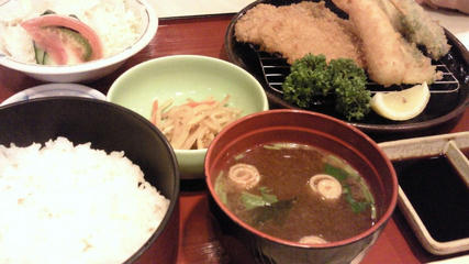 ママンのオーダーは揚げ物でもカットしてあって、