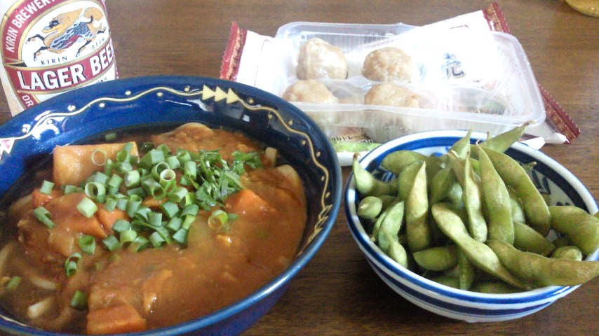 ミックスサンドイッチ/カレーうどん/えだ豆/シュウマイ/KIRIN キリンラガービール500ml