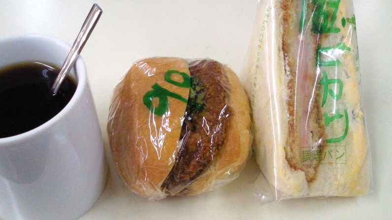 メンチカツパン/海老カツサンド/インスタントコーヒー(ブラック)