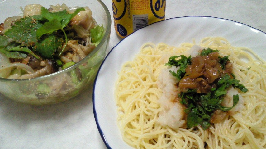 梅じそおろしのカッペリー二/レタスのきのこあんかけ/KIRIN のどごし生350ml