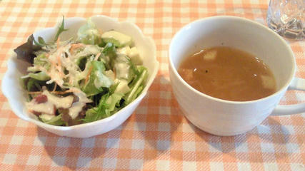 シーフードスパゲッティ/豆腐サラダ/トースト/オニオンスープ/コーヒー