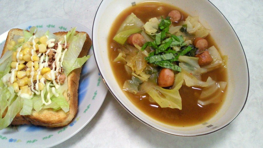 キャベツ60g、ホールコーン20g、豆乳120g、