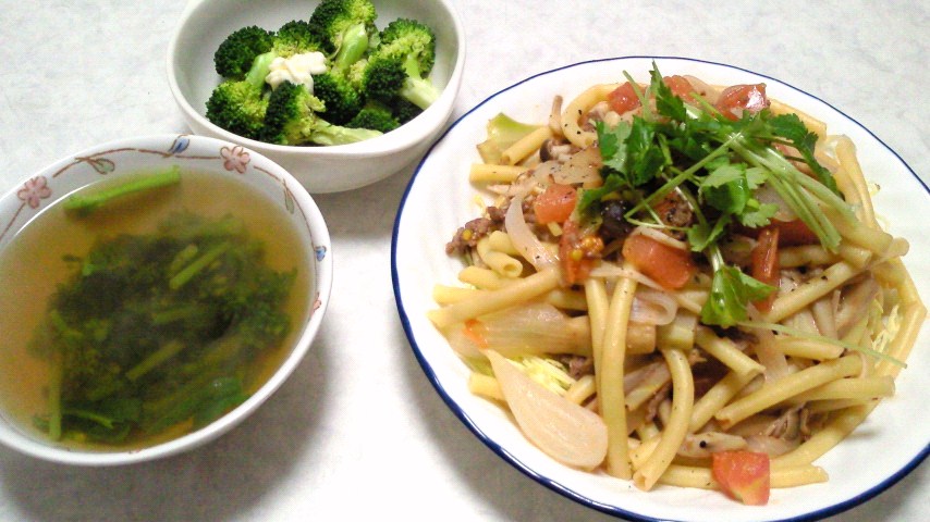 それだとちょっとボリュームが足りないからキャベツときのこで増量。