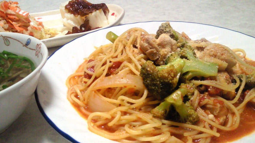 トマトスパゲッティ/コールスロー/長いも/きのこスープ/麦茶