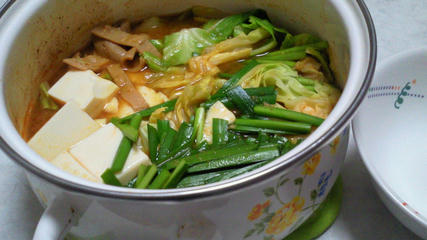 もつ鍋/うどん/長ねぎ/白菜/しいたけ/パン耳/煎茶