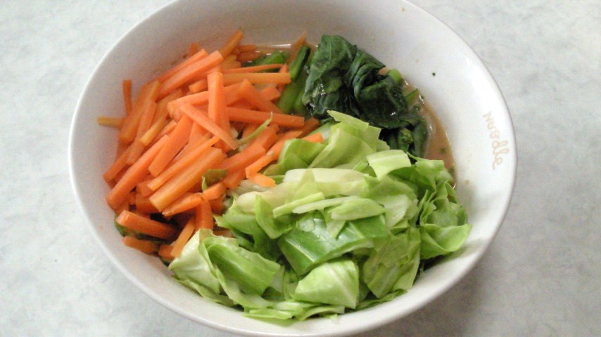 野菜で埋まったかわいそうなラーメンの図