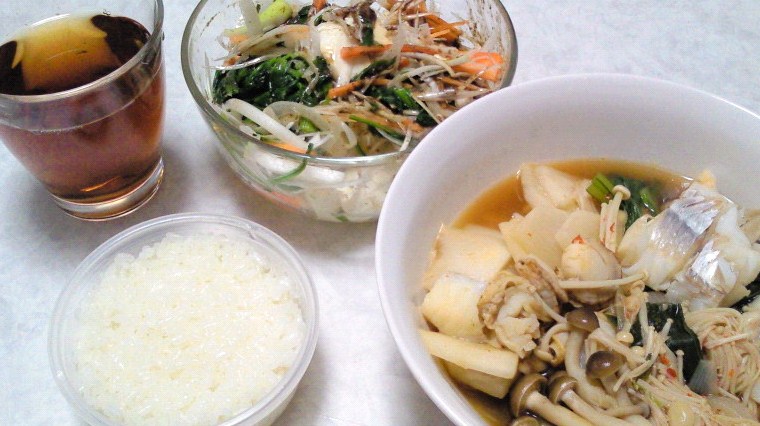ご飯/たらちり鍋/豆腐サラダ/麦茶