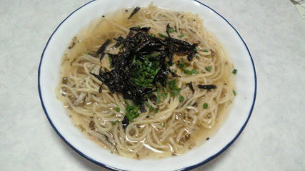 お茶漬けの素でスープスパ。そして切干大根でボリュームアップ!