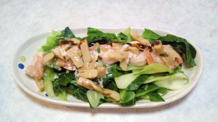 青梗菜のエビあんかけは、ちょっとだけ盛り付けを考えてみた。(しかしセンスない)