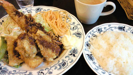 ご飯/コンソメスープ/白身魚のフライ/ほたてフライ/いかのリングフライ/