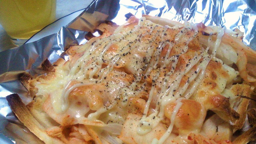 パン耳キムチピザトースト/煎茶(グラス)