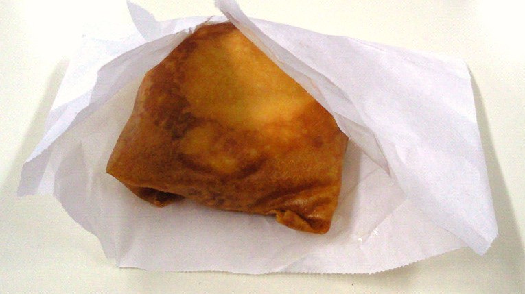 肉まんなのに、春巻きの皮に包んで揚げている・・・。