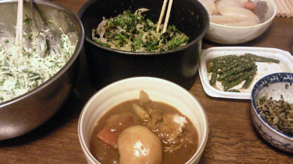 焼きうどん/カレーライス(チキン)/いんげんのごま和え/コールスロー/