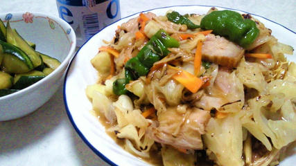 皿うどん/きゅうりの醤油漬け/サッポロ ドラフトワン350ml×2本