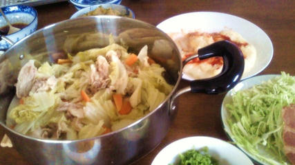 白菜鍋/ハム(ロース)/キャベツの千切り/ごまだれ/もちピザ/磯辺もち