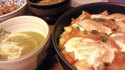 夕飯は玉ねぎが傷んでいたので、大量に消費してみた。