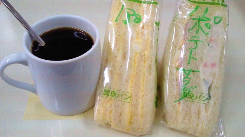 ポテトサラダハムサンド/卵サンド/インスタントコーヒー(ブラック)
