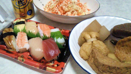 コールスロー/にぎり寿司(さけ・あなご・まぐろ・ほたて)/