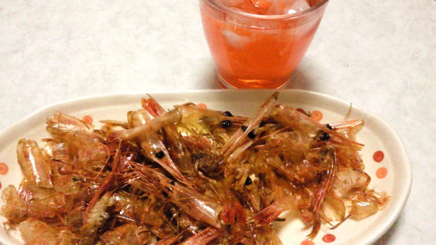 エビの殻の素揚げ。どんだけ食うねん。