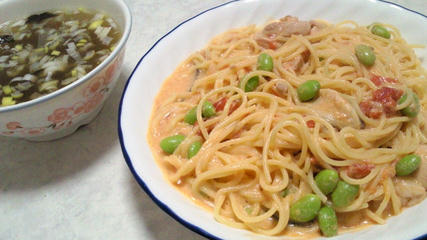 豆乳トマトスパゲッティ/海苔のスープ