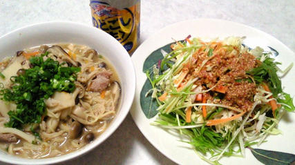 豚骨ラーメン/ピリ辛ごまマヨサラダ/KIRIN のどごし生 缶350ml