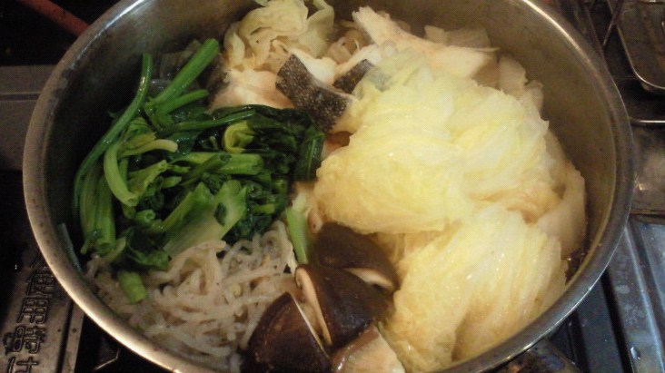 鍋いっぱい(写真は24か26センチ径)食べて、魚だったら500キロカロリーとかにできる。