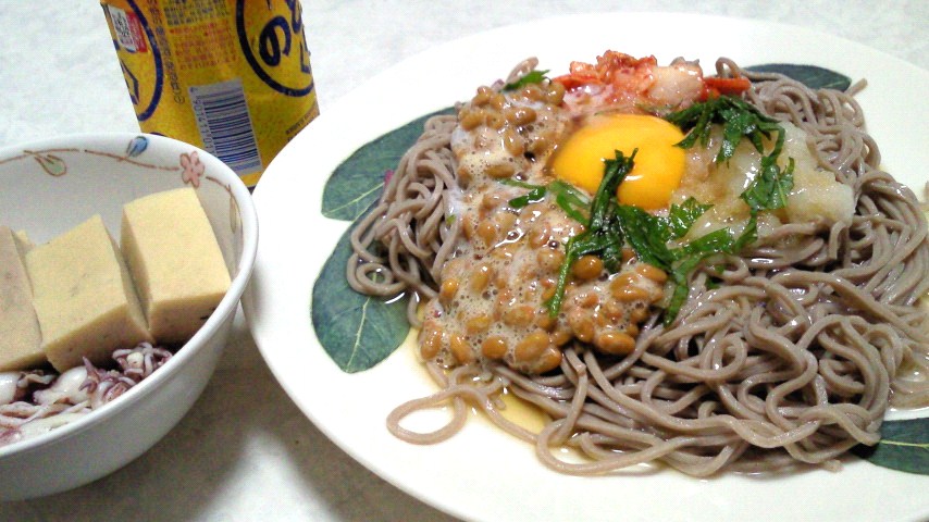 五香そば/高野豆腐の煮物/ひいかの煮物/大根/KIRIN のどごし生350ml