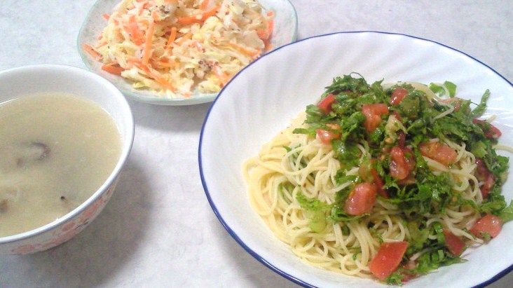 冷たいトマトのカッペリー二/コールスロー/きのこスープ