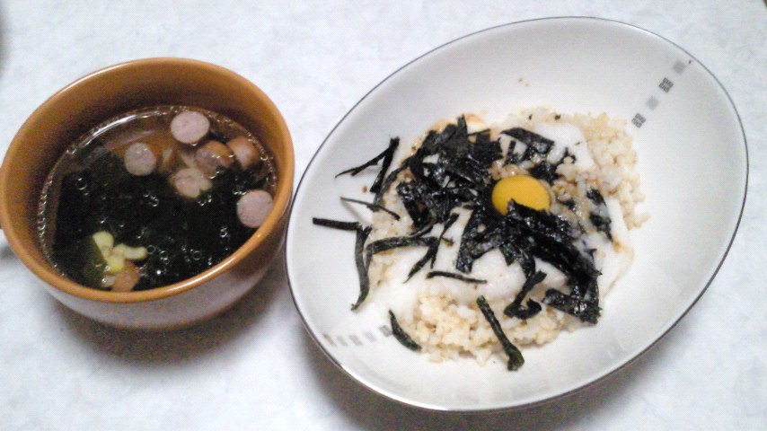 玄米ご飯135g、長いも90g、うずらの卵、醤油、海苔