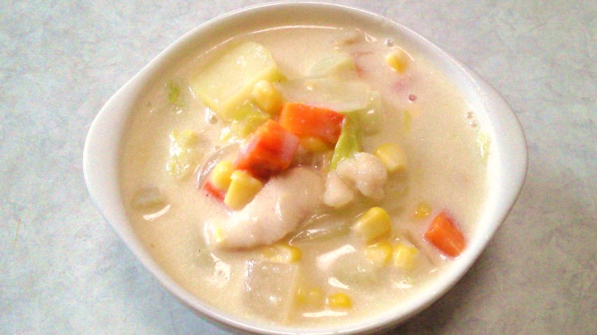 あっためた牛乳をちょっとずついれて、コンソメや塩コショウで味を調えるわけです。