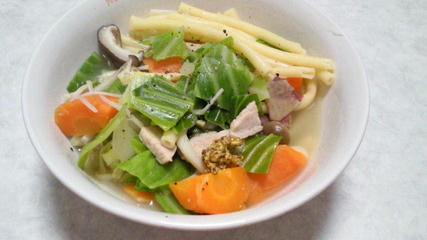 不思議な食べ物となってしまったマカロニ入りポトフ・・・。