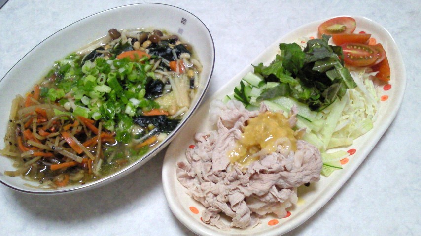 お雑煮にきんぴらも入ってます。冷しゃぶはからし酢味噌です。