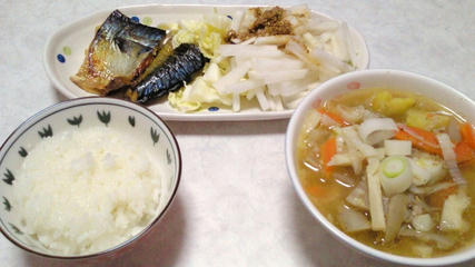 「夕ご飯は写真の倍量食べている。」と思って下さい。たーいしょーくかーん。