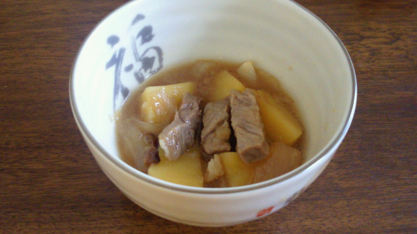 先日の血統書付きご立派ミートは無残にも肉じゃがに・・・。