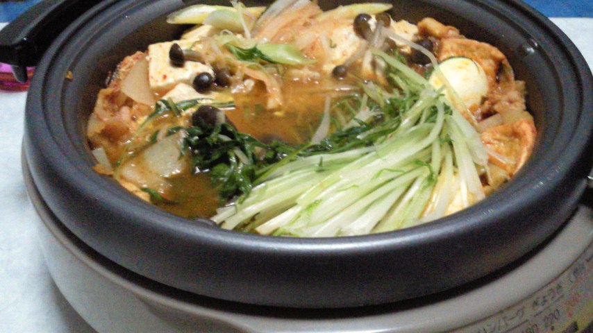キムチ鍋にそうめんを入れるのはいいけど、ヒマワリは「茹でてから」入れたい。