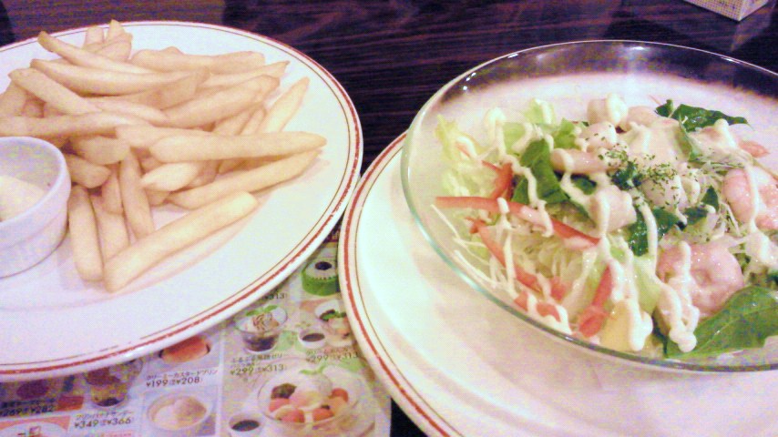 シーフードサラダ/フライドポテト/ぶどうジュース/カルピス
