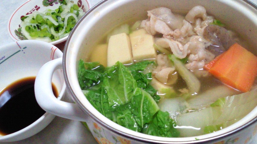豚の水炊き/うどん/かぶの漬けもの/焼きのり