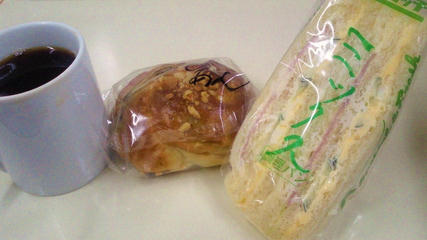 メンチカツパン/ウインナー卵サンド/インスタントコーヒー(ブラック)