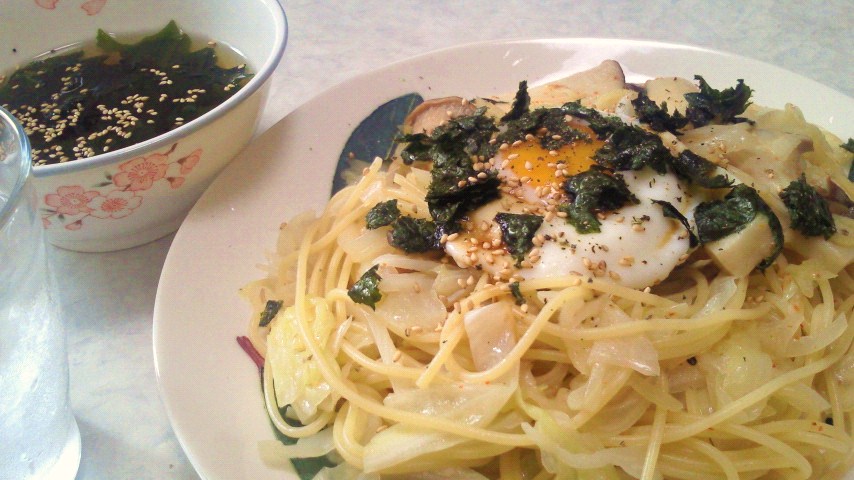ペペロンチーニスパゲッティ/わかめのコンソメスープ