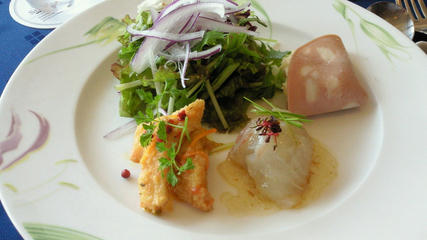グリーンサラダ/たらの南蛮漬け/たいの刺し身/ポテトサラダ/ハム(ロース)/