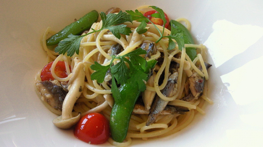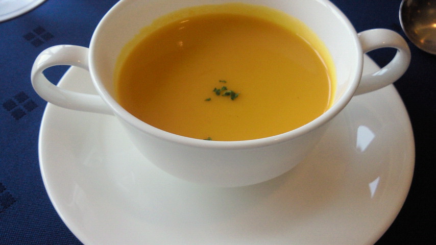 にんじんポタージュ/オイルサーディンと野菜のオイルパスタ/ロールパン/