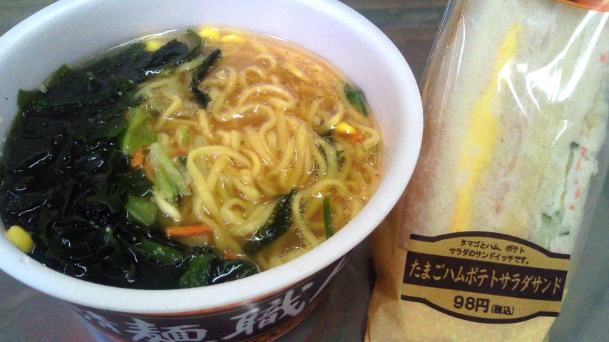 日清麺職人 すりごま味噌/たまごハムサンド/インスタントコーヒー(ブラック)