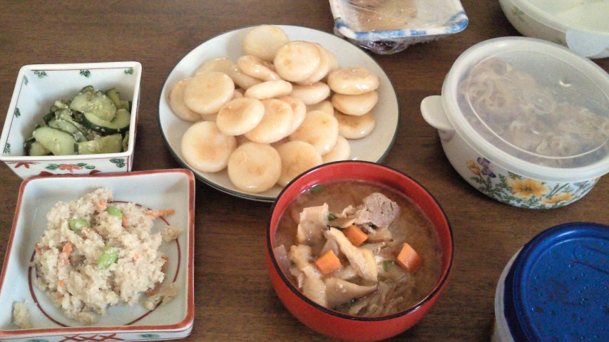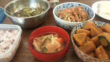 豚汁/切干し大根の煮物/きゅうりの酢の物/おからのいり煮/